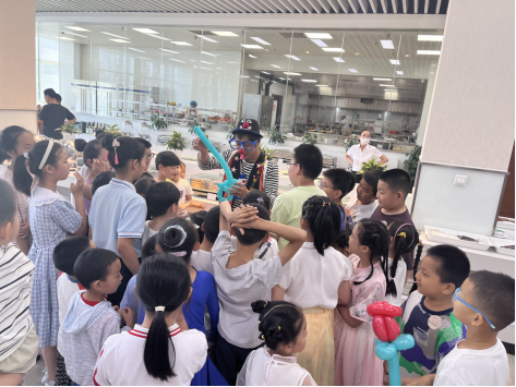 一個個五顏六色的氣球,不僅是活動中不可或缺的裝飾,更是孩子們歡樂、玩耍、自由的最直接的催化劑。在表演之后,伴隨著動感的節(jié)奏,小丑先生開始為在場的小朋友派發(fā)創(chuàng)意氣球禮物。簡單的氣球在小丑先生的手中瞬間變?yōu)榱烁魇礁鳂拥男螤罴靶游铮尨蠹覑鄄会屖帧?/p>